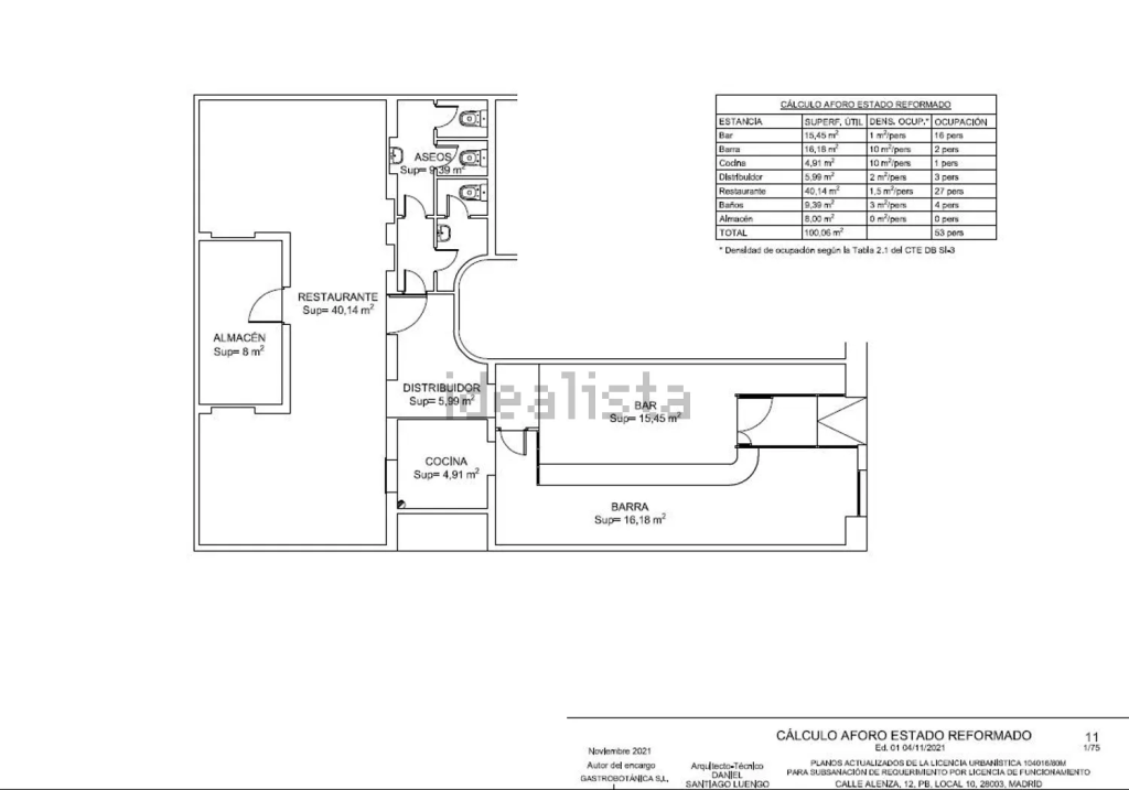 Se alquila Bar Restaurante de 120 metros cuadrados en la calle Alenza.